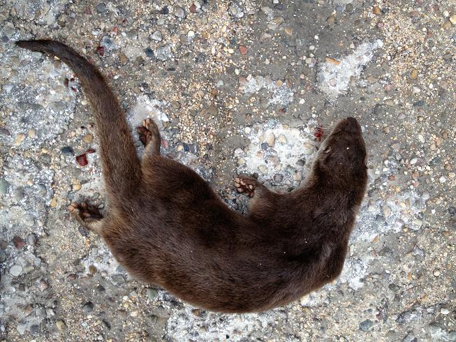 El caso es que el viernes, cuando nos dirigíamos de Burgos a la Granja Escuela de Arlanzon a pasar la noche, tuvimos la mala suerte de atropellar una nutria en una carretera que transcurre a unos 500 metros del río. No pudimos hacer nada, apenas tuvimos dos segundos para decidir no dar un volantazo y poner en riesgo la vida de todos. No sabíamos que habíamos atropellado, un zorro, una liebre… El caso es que cuando pudimos ver de qué animal se trataba, la pena y el sentimiento de culpabilidad fue grande. ¡Una nutria!, jamás había tenido la posibilidad de contemplar este animal en libertad, ni siquiera sabía que había nutrias en el río Arlanzon. Y la primera que veo me la cargo con el coche sin poder evitarlo.