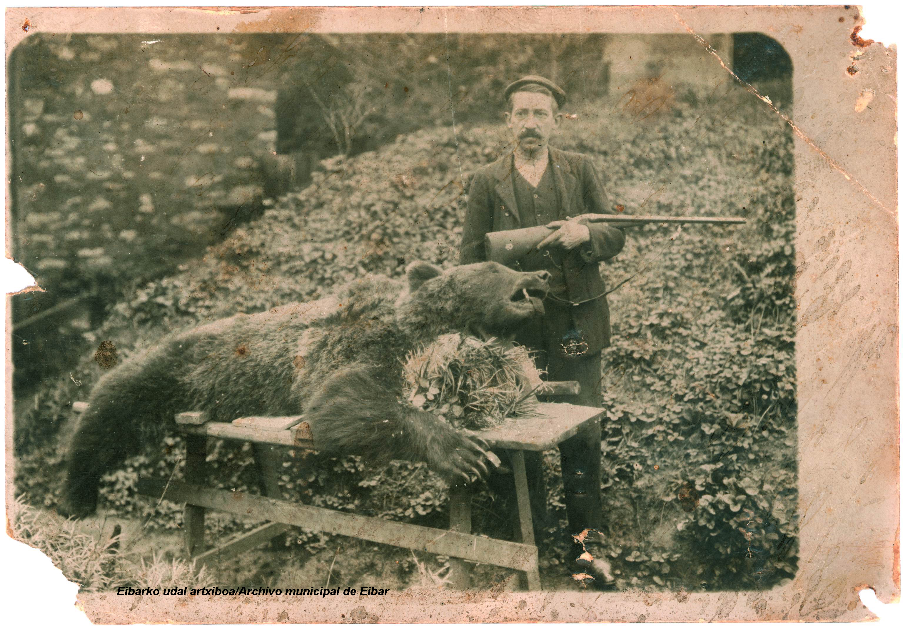 Son ya casi de 140 años cuando en los montes de Urkiola y en la zona denominada como Eskillar de la Peña Eskubaratz más abajo de Kanpatorrosteta, el morroi (criado) de la familia Bizkarra del caserío Askondo, logró abatir junto con otros dos vecinos y con una escopeta de avancarga, un magnífico oso pardo que días atrás les había matado varias ovejas. Juan Aguirre (q.e.p.d.) del caserío Barrenengo, del precioso valle de Urkuletas corazón de esta ubérrima cordillera de porte majestuoso, nos contó allá por el año 1995, como estos tres jóvenes baserritarras una noche de invierno hicieron un aguardo al oso en lo alto de la montaña. La fortuna quiso que al retirarse el oso al amanecer tropezase con una cabra a la que mató al instante. Sus chillidos alertaron a los cazadores que de un certero disparo hicieron rodar peñas abajo al último oso pardo de Vizcaya. Eran otros tiempos, y nada se les puede achacar a estos intrépidos cazadores / ganaderos que en definitiva defendían sus intereses de la única forma que podían hacerlo. Conviene recalcar para aclarar esta ultima afirmación, que en aquel agosto de 1871 el ayuntamiento de la anteiglesia de Mañaria concedió un diploma EN PERPETUA MEMORIA al ganadero que abatió el ultimo oso de Bizkaia.